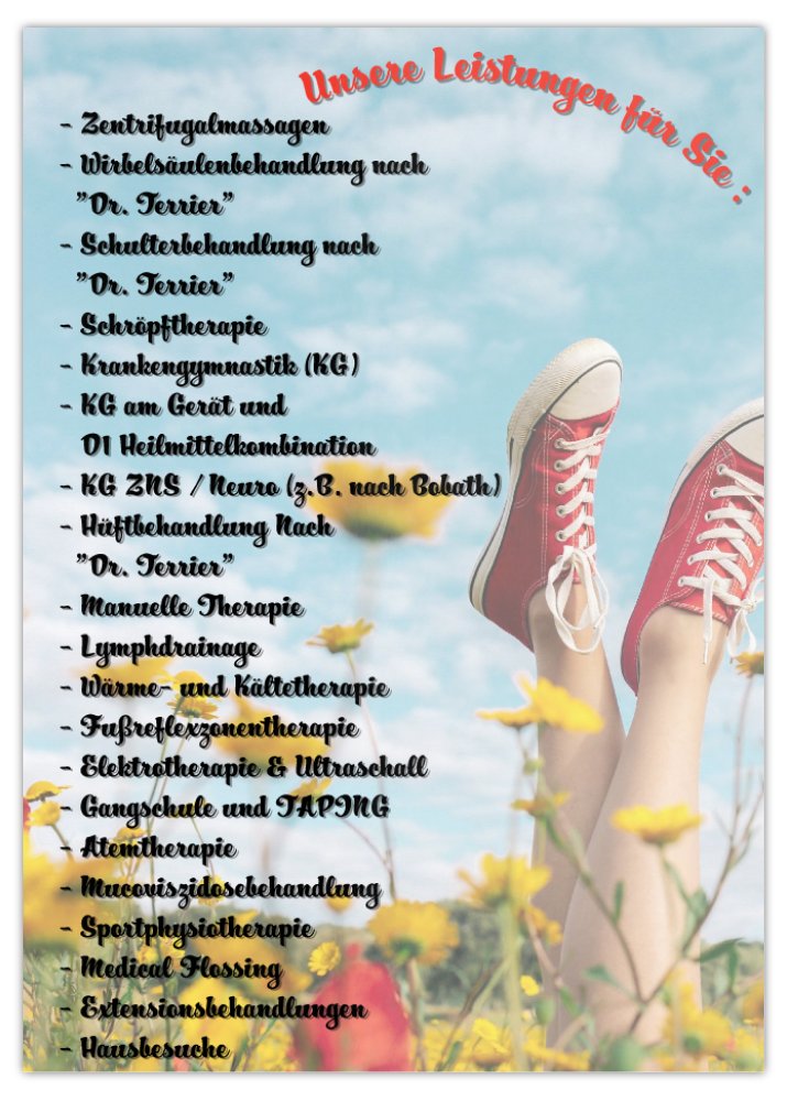 Wir bieten Ihnen Lymphdrainage und Krankengymnastik, Therapien bei Wirbelsäule- und Gelenkproblemen, Präventionskurse, postoperative und konservative Therapien und ein breites Massageangebot.