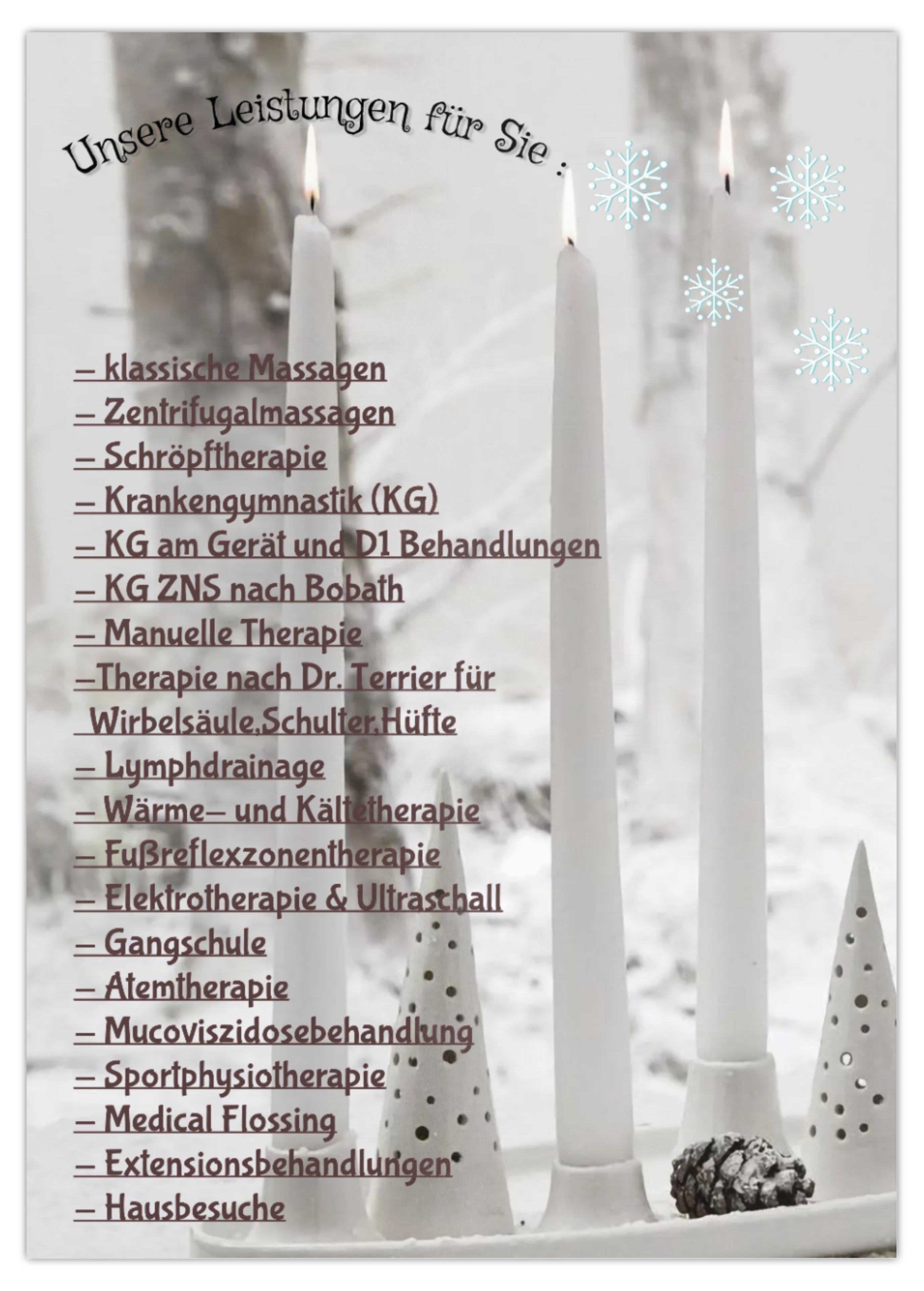 Unsere Leistungen bieten wir Ihnen übrigens auch mobil an, d. h., wir kommen zu Ihnen nach Hause oder ins Büro! (Mobile Massagen)